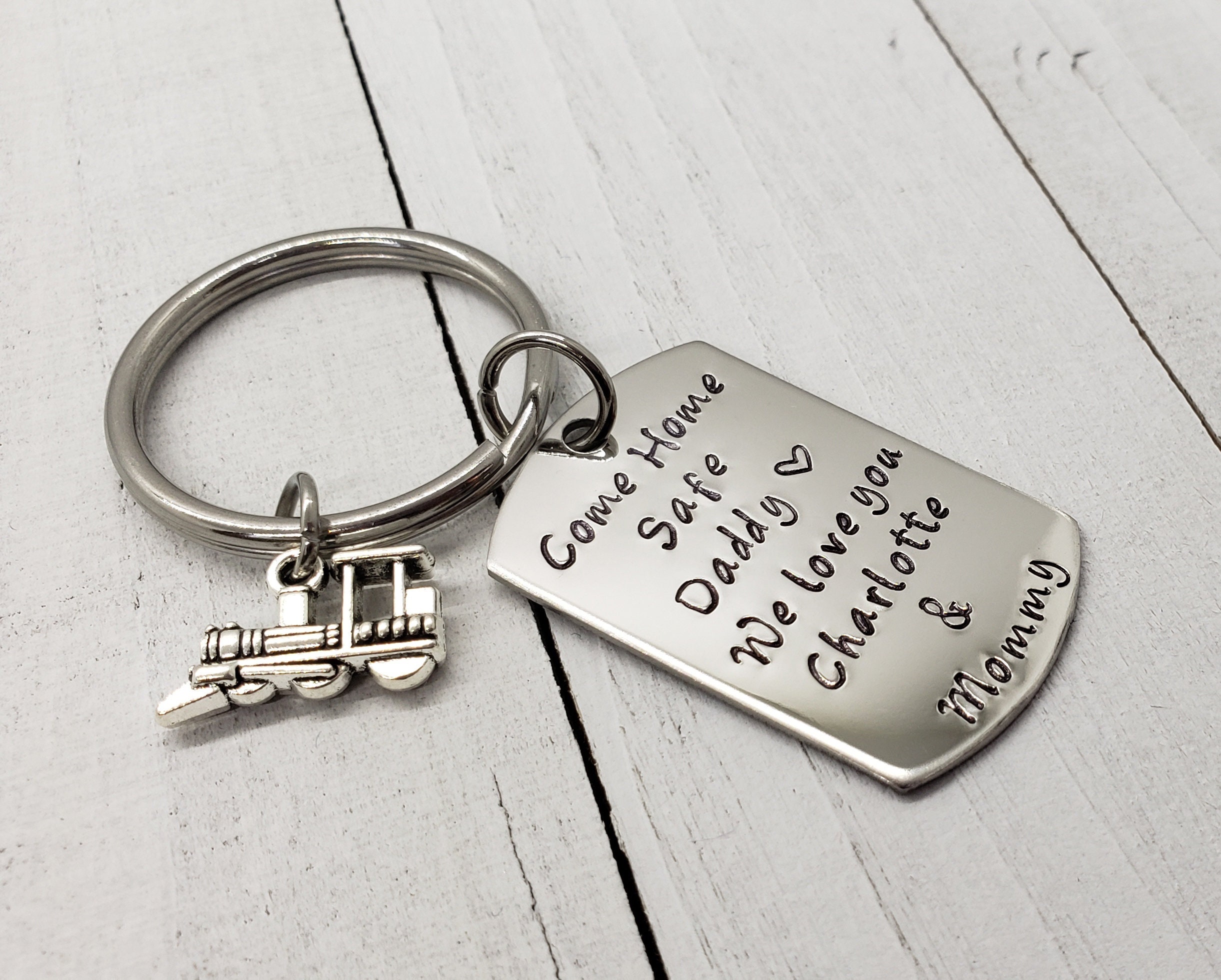 Railroad Drive Safe Keychain Come Home Safe Keychain With Train Be Safe Daddy Keychain Handstamp Conductor Be Safe Gift Train Keychain